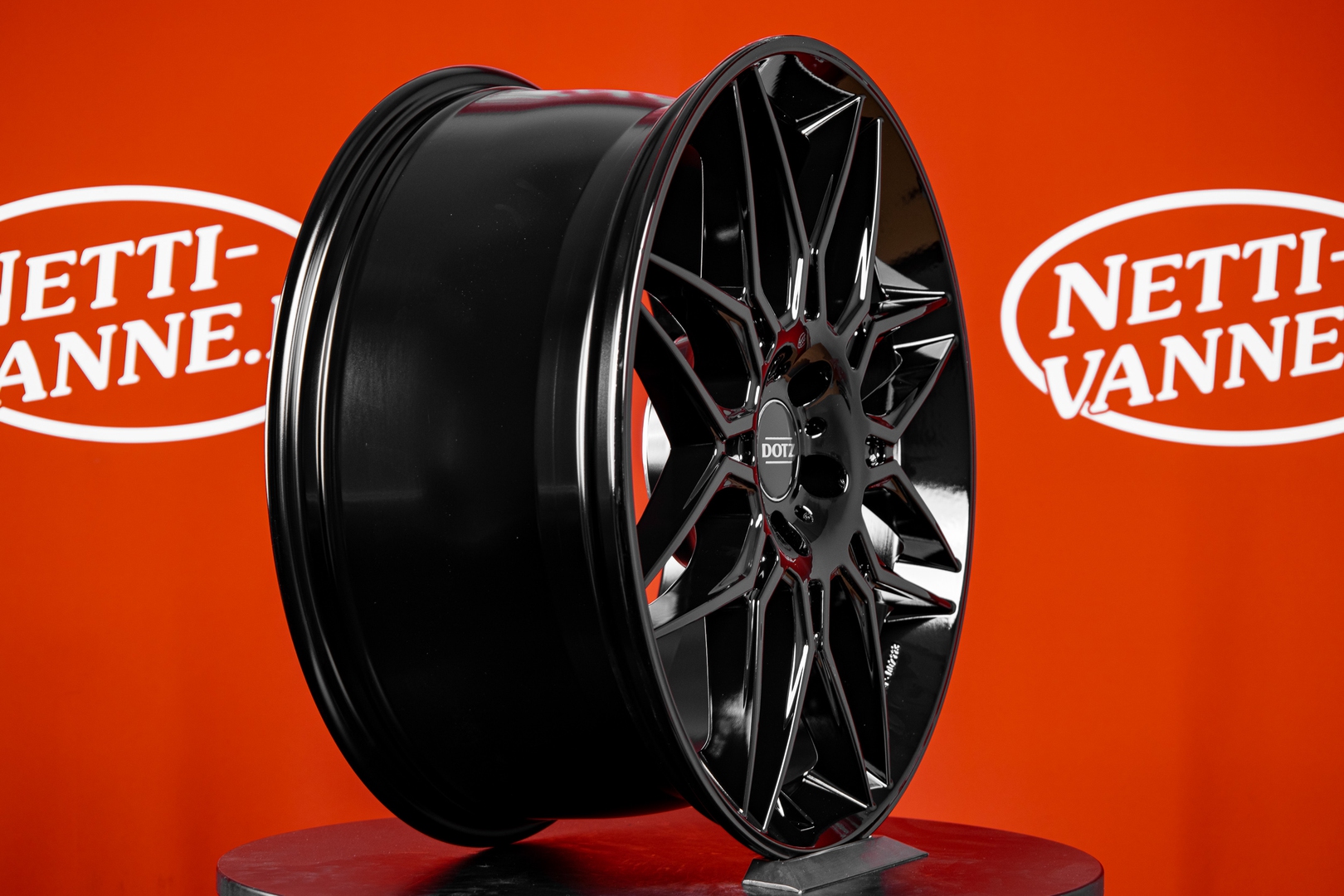 DOTZ LONGBEACH GLOSSY BLACK 9x20 5x112 66.6 et50 Puolipallokiinnitys pitkällä r13 pultilla