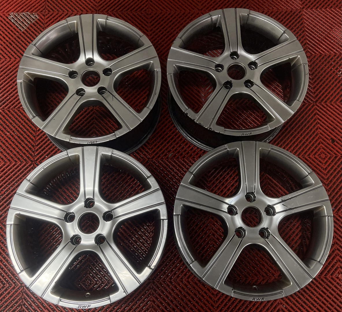 Käytön jälkeä, mutta muuten toimivat vanteet! Keskimerkit puuttuvat.